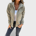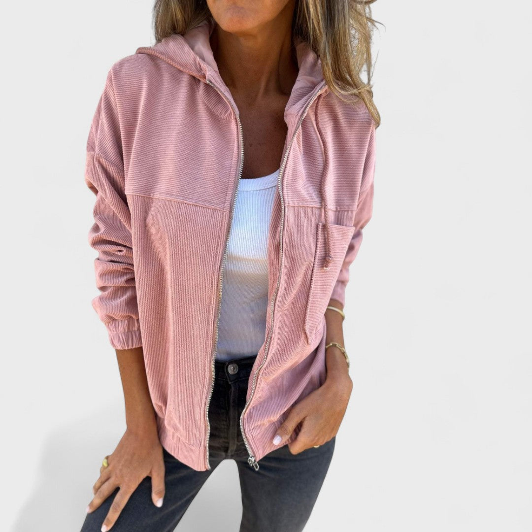 Bunda Veronika je ideální volbou pro ty, kteří hledají kombinaci retro šarmu a moderní funkčnosti. Je vyrobena z kvalitního, měkkého sametu, který je příjemný na dotek a dodává bundě nadčasový vzhled. S praktickým zipem, pohodlnou kapucí a dvěma bočními kapsami je tato bunda nejen stylová, ale i vysoce funkční. Je skvělá na procházky, do města nebo jako součást elegantního vrstveného outfitu.