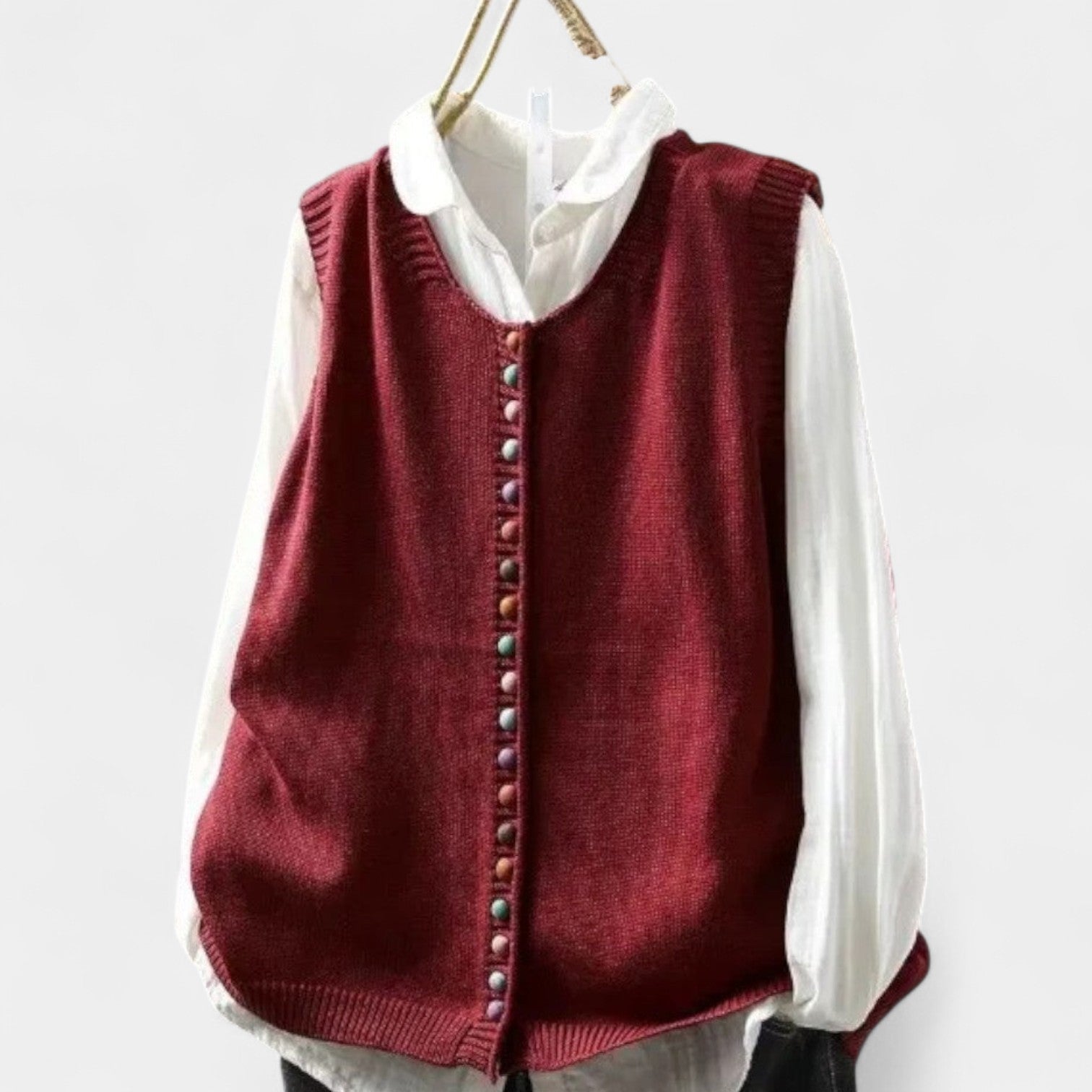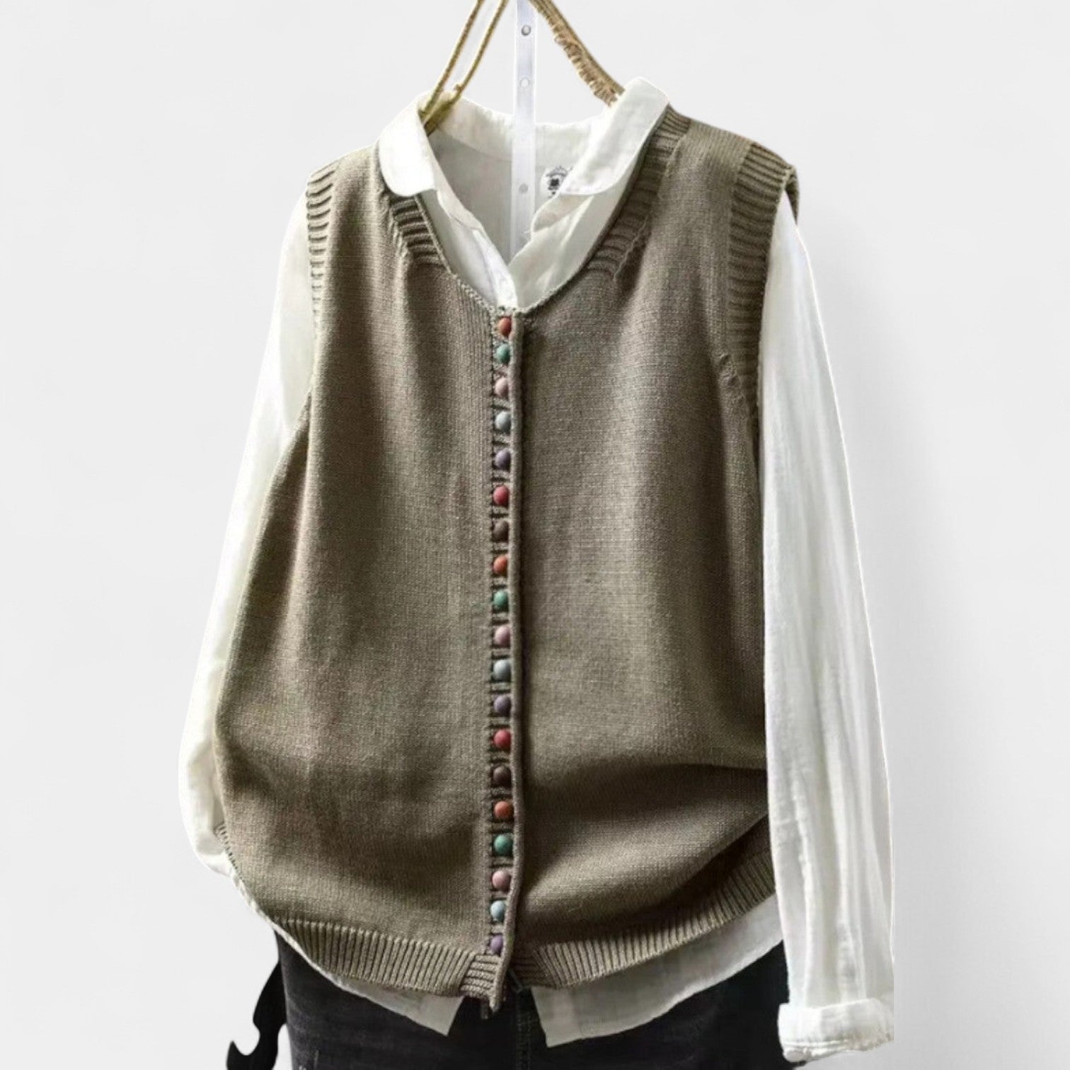 Pletená vesta Karmen je dokonalým spojením pohodlí a elegance. Díky svému nadčasovému designu a všestrannému střihu se stane oblíbeným kouskem vašeho šatníku – ideální pro vrstvení přes košili, šaty nebo tričko. Skvěle se hodí pro práci, volný čas i večerní setkání.