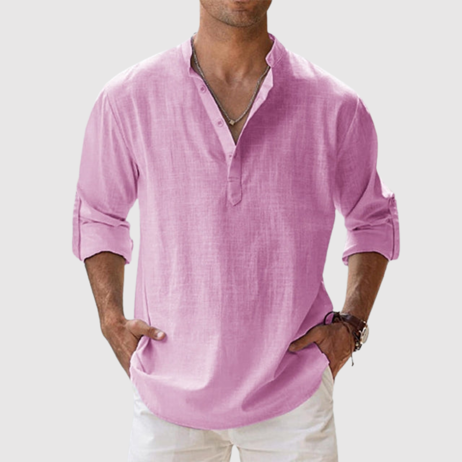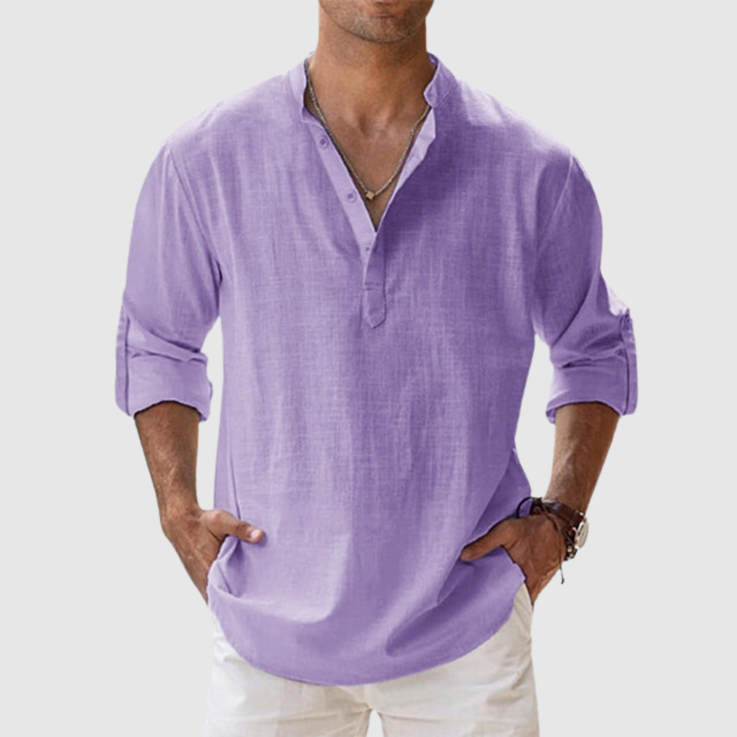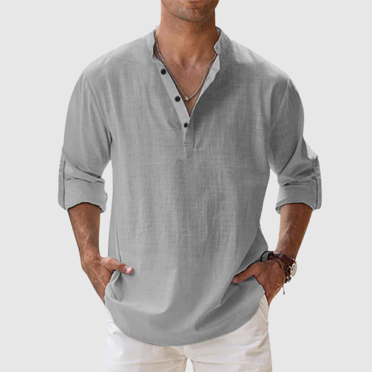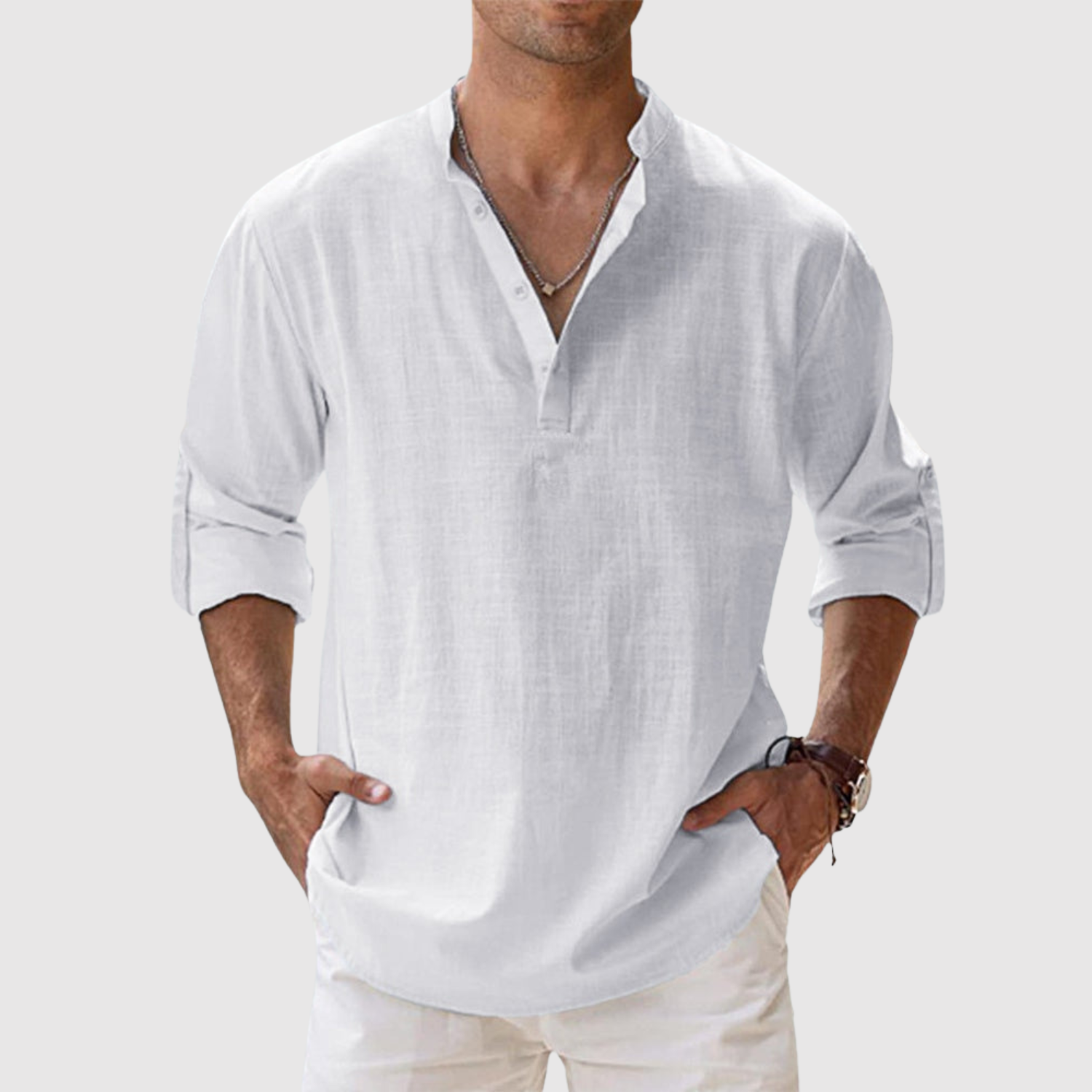 Naše lněná košile je určena pro muže, kteří hledají svěží a moderní vzhled, aniž by se vzdali pohodlí. Díky volnému střihu a univerzálnímu designu je ideální jak na procházky po pláži, tak pro ležérní městský styl. Lehká a prodyšná tkanina zajišťuje pohodlí po celý den, zatímco design s otevřeným límcem a dlouhými rukávy, které lze vyhrnout, z ní dělá praktický a nadčasový kousek.