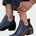 Sofistikovaná kotníková elegance Elegance na každém kroku Věnceslava kotníkové boty spojují sofistikovanou siluetu s jemnými kovovými hvězdami, nabízejí pohodlný nízký podpatek, precizní střih a univerzální využití od práce po večerní události.