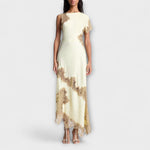 Objevte dokonalou kombinaci elegance a pohodlí s našimi šaty diagonálně střižené, asymetrické. Jsou navrženy tak, aby elegantně obepínaly vaše tělo a mají nádherné beige krajkové vsadky a chic výstřih ve tvaru klíčové dírky se zapínáním na háček a oko.