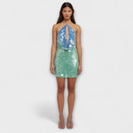 Udělejte odvážné prohlášení s našimi úchvatnými mini šaty, navrženými tak, aby přitahovaly pozornost na každé slavnostní příležitosti. S lesklým gradientem, který přechází z modré do zelené, jsou tyto šaty ideální pro každého, kdo miluje třpyt.
