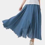 Oživte svůj letní šatník s touto dlouhou sukní z lehkého materiálu. Široký střih a přirozený pohyb vytvářejí éterický vzhled, který ohromí při každém kroku.