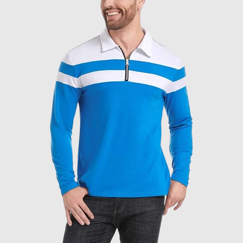 Tento elegantní svetr se zipem a pruhy byl navržen pro muže, kteří chtějí vypadat stylově s lehkostí v každodenním životě. Vyroben z kvalitní tkaniny, poskytuje prodyšný komfort s elegantním designem se zipem a jemnými pruhy - ideální pro neformální procházky, chytré vrstvení nebo neformální obchodní oblečení.