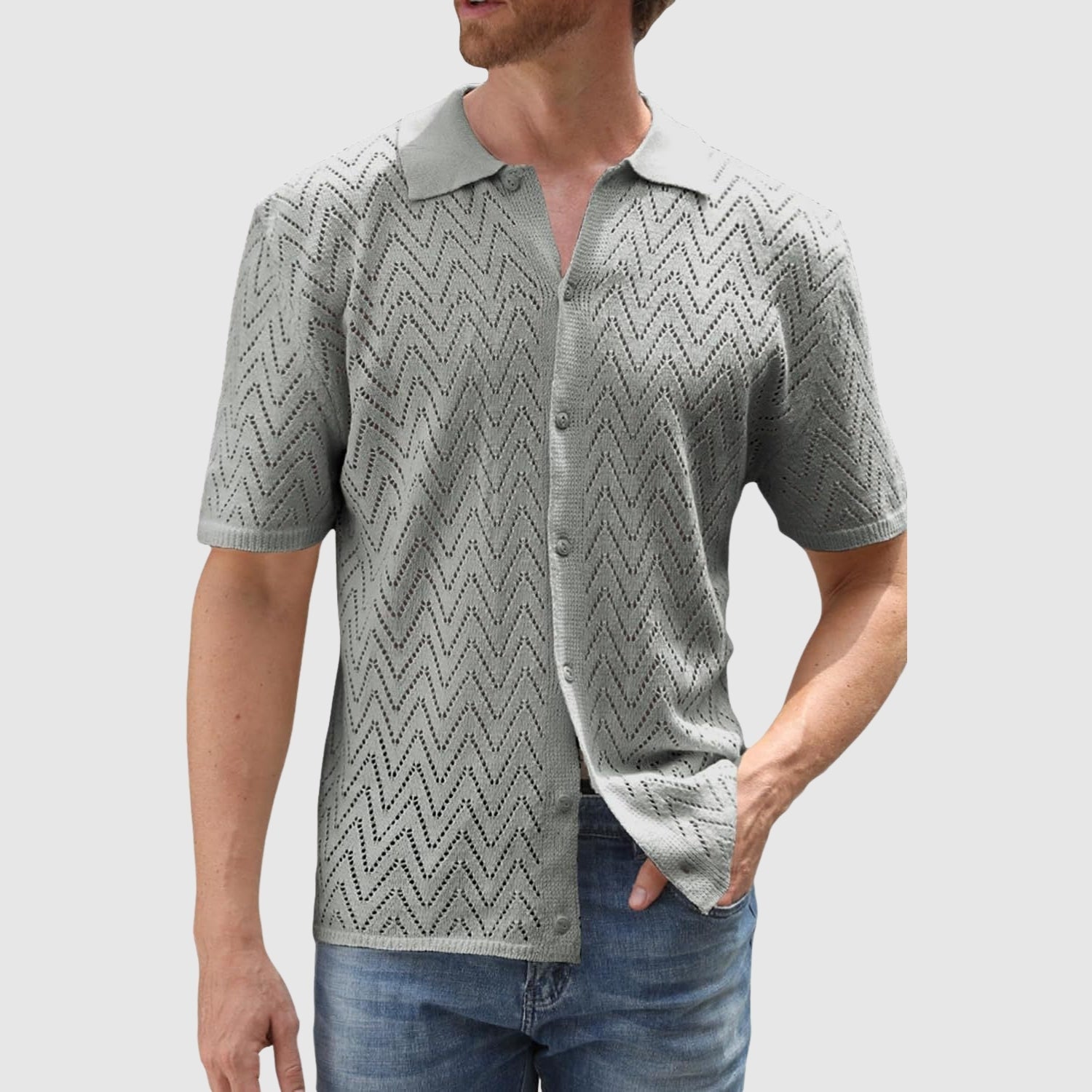 Odvažte se nosit oděv, který kombinuje svěžest, texturu a moderní styl. Tato pletená košile se zigzagovým vzorem dodává moderní a sofistikovaný nádech, aniž by se vzdávala pohodlí. Díky lehké a prodyšné tkanině je ideální pro každou neformální příležitost nebo letní událost.