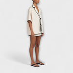 Zažijte dokonalou kombinaci elegance a pohodlí s naší sadou sukně NOIR CREAM. Tento ohromující komplet obsahuje košili s krátkým rukávem a výstřihem do V bez límečku, což dodává vašemu vzhledu jemný nádech.