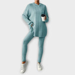 Set Helen je vyroben z ultra měkké, prodyšné tkaniny, což ho činí ideálním pro relaxaci nebo na pohodové výlety. Se svým odpovídajícím topem a kalhotami nabízí tento set elegantní a zároveň pohodlný vzhled, který je perfektní pro každou ležérní příležitost.