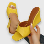 Módní sandály na klínu se čtvercovou špičkou, které se vyznačují jednoduchým nazouváním a elegantním jednobarevným designem. Ideální na výlety nebo zvláštní příležitosti.
