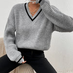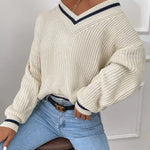 Nadčasový, preppy kousek, který vylepší tvůj ležérní šatník s nenucenou elegancí. Marina Pruhovaný Svetr z Vaflového Úpletu je vyrobený z měkkého, prodyšného vaflového úpletu, který je stejně příjemný na nošení, jako i na pohled. Hluboký výstřih do V lichotivě zvýrazní dekolt, zatímco krabicový oversized střih vytváří uvolněnou, ale stylovou siluetu.