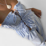 Střih: Vysoký pas, bez ramínek: Vysoký střih bez ramínek zvýrazňuje postavu a nabízí moderní vzhled.